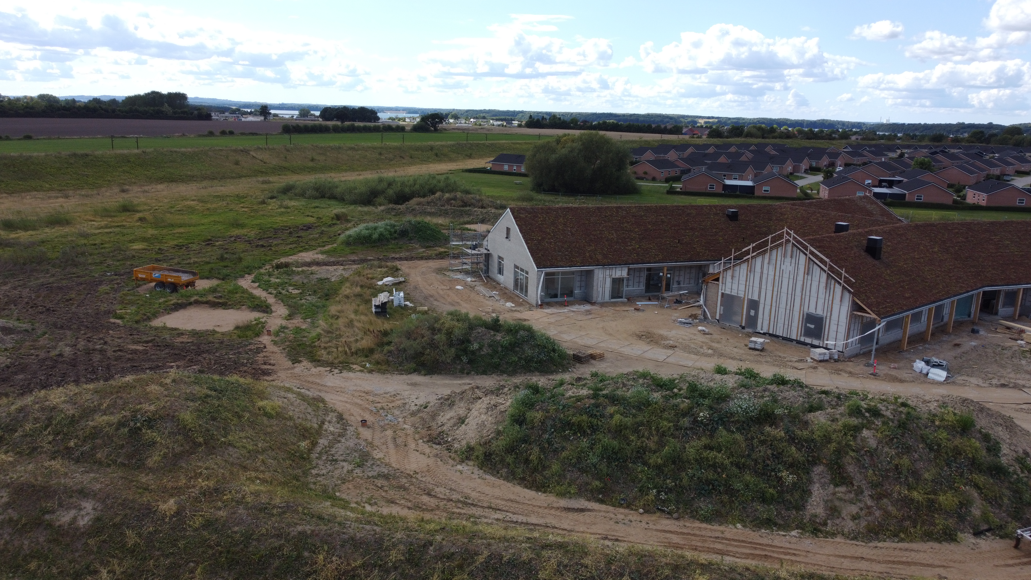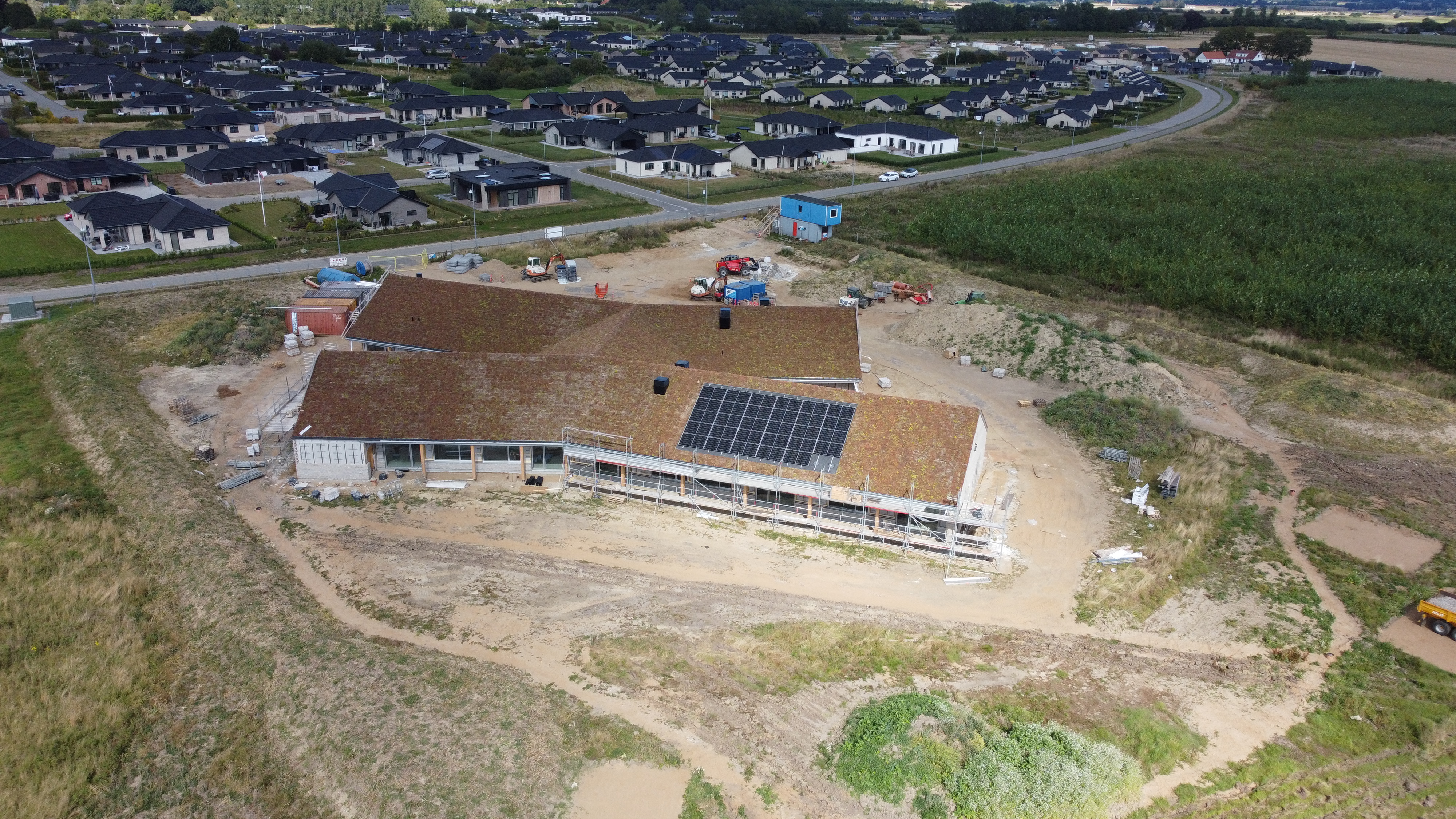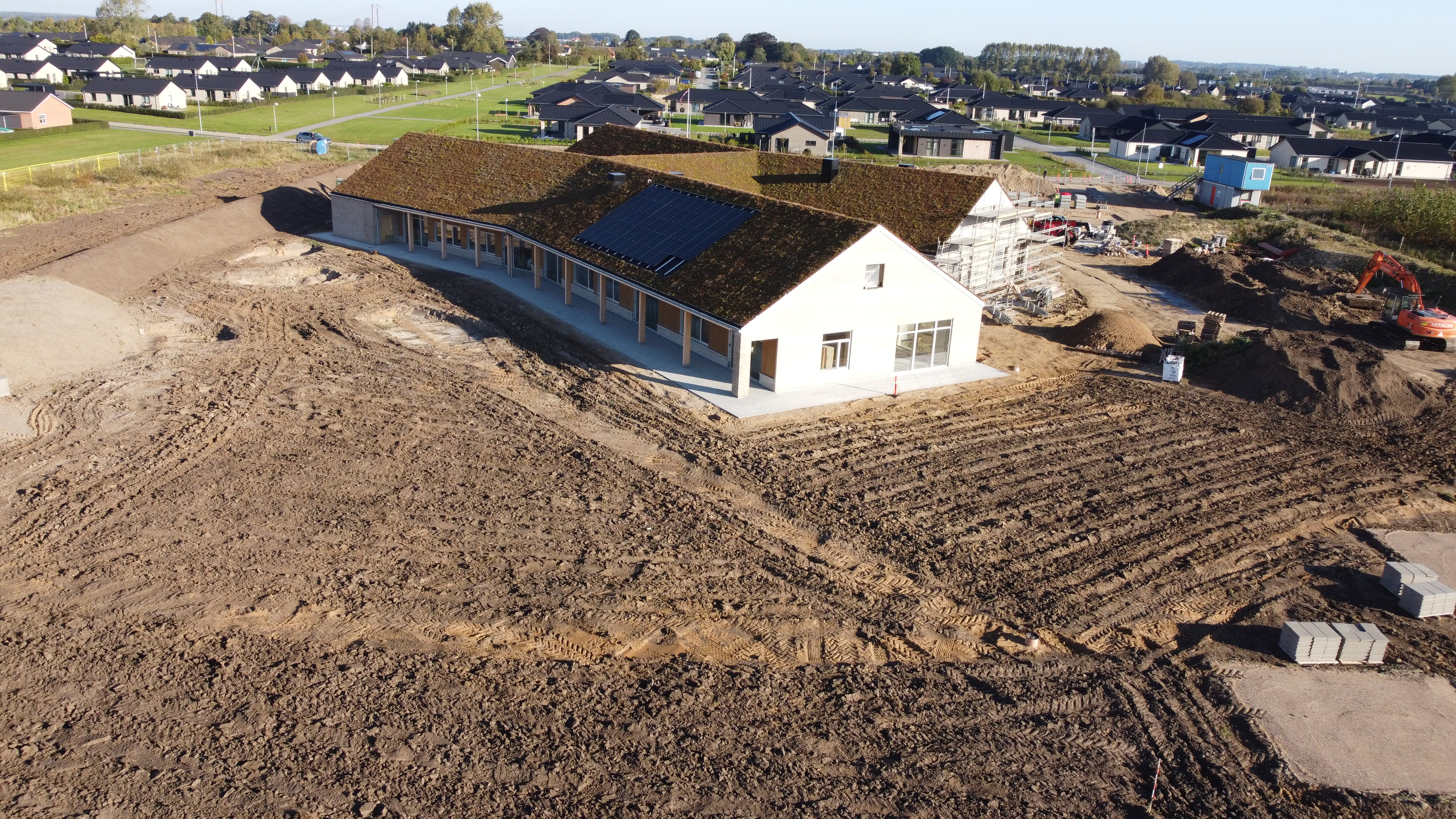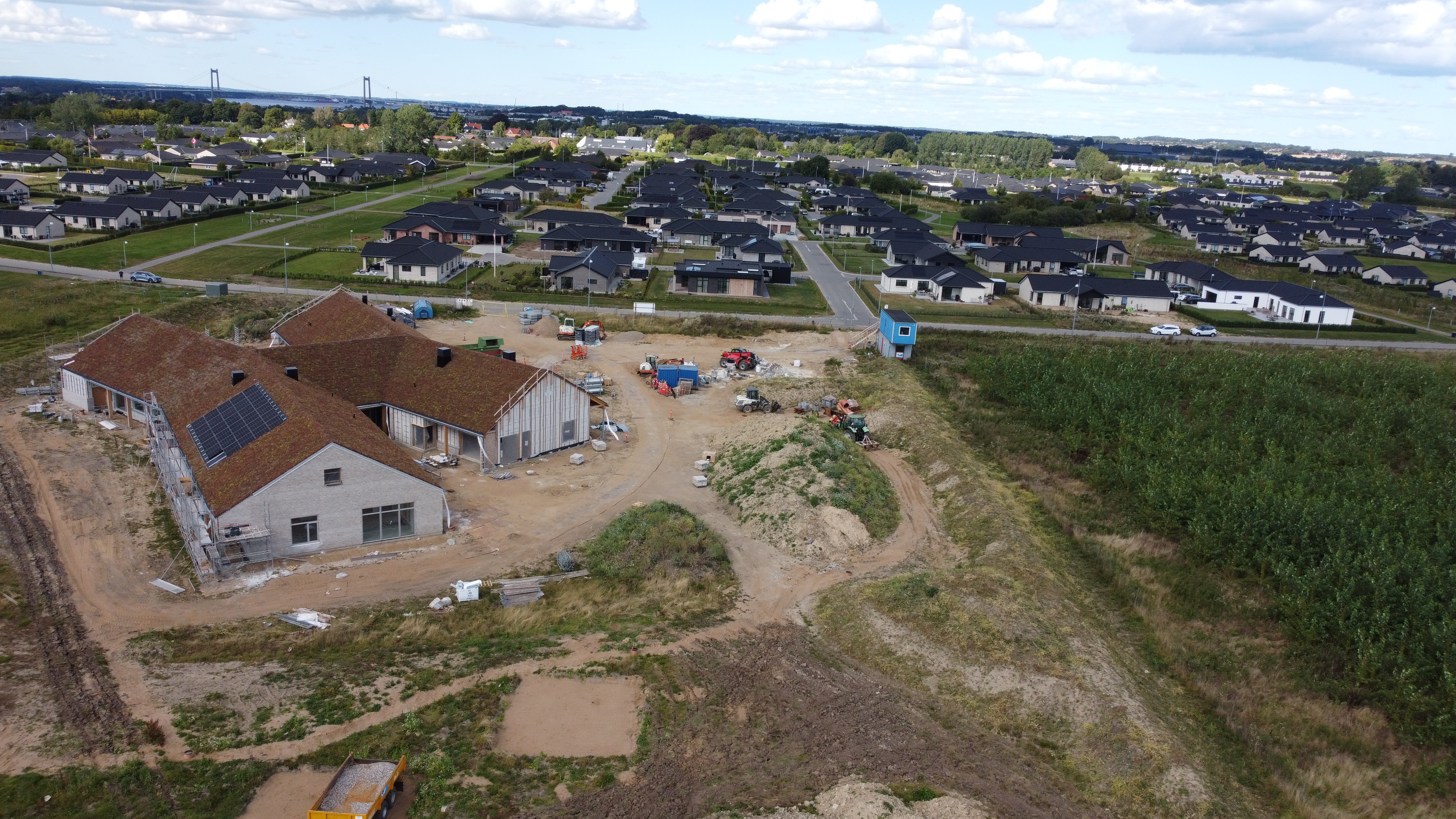 Her har vi samlet dronebilleder fra byggeriet af vores nye børnehus i perioden juli til september 2025.