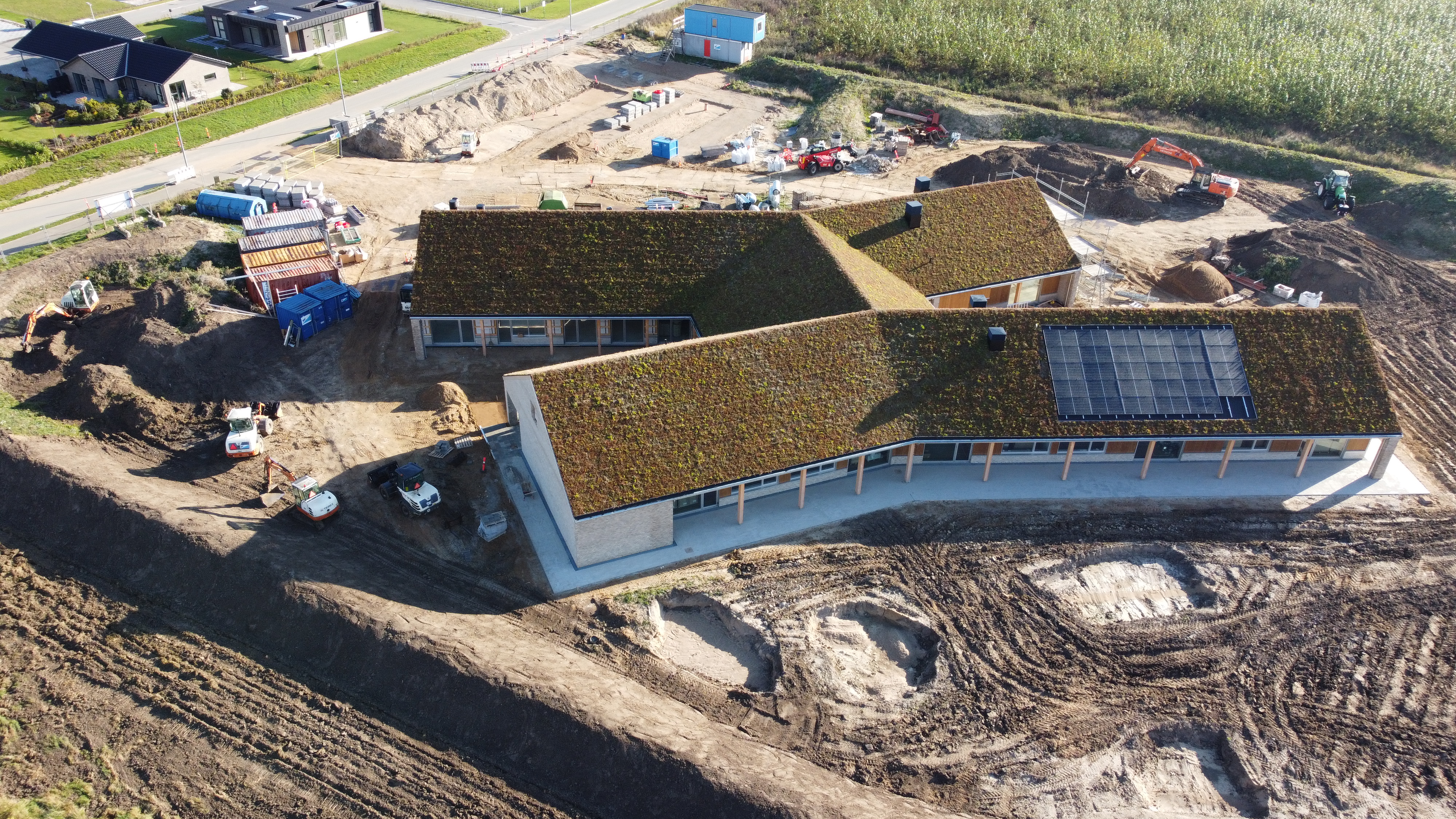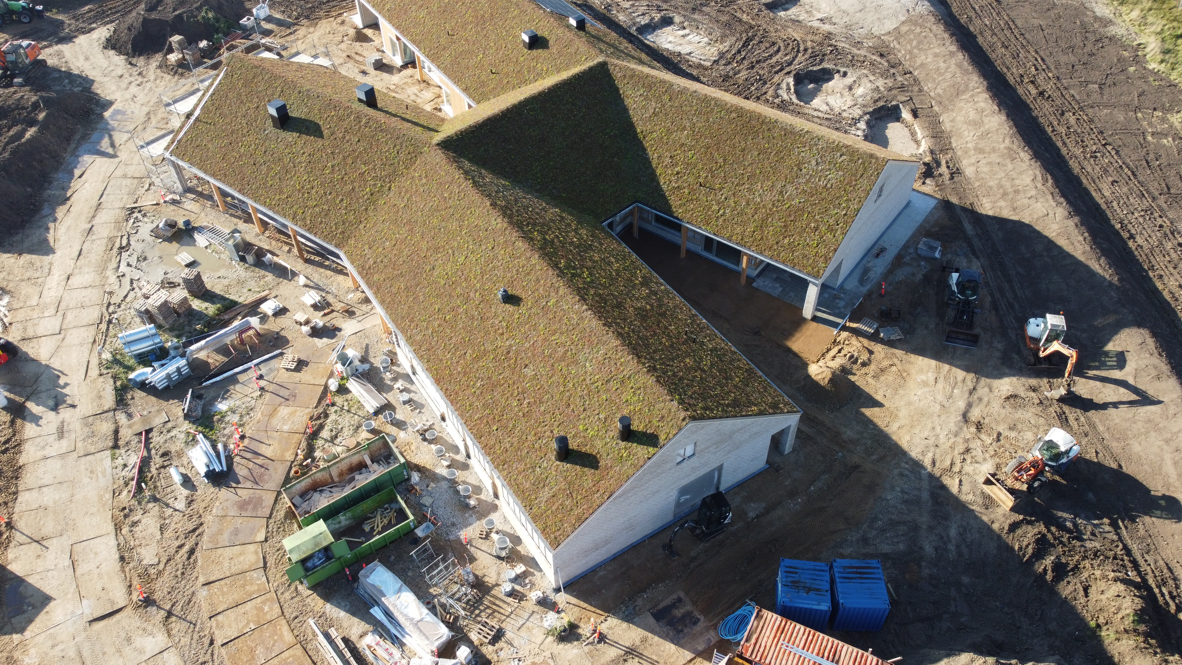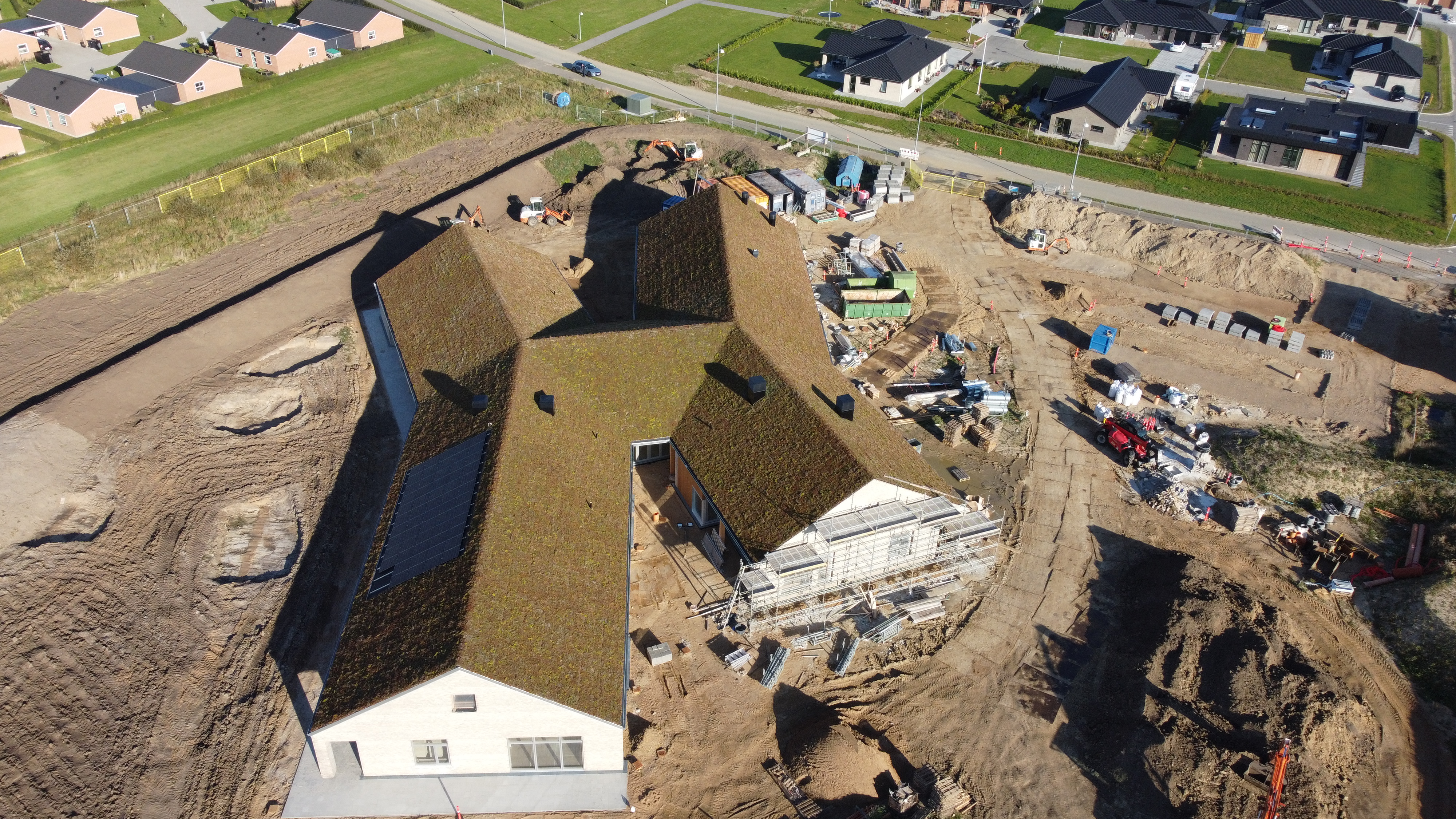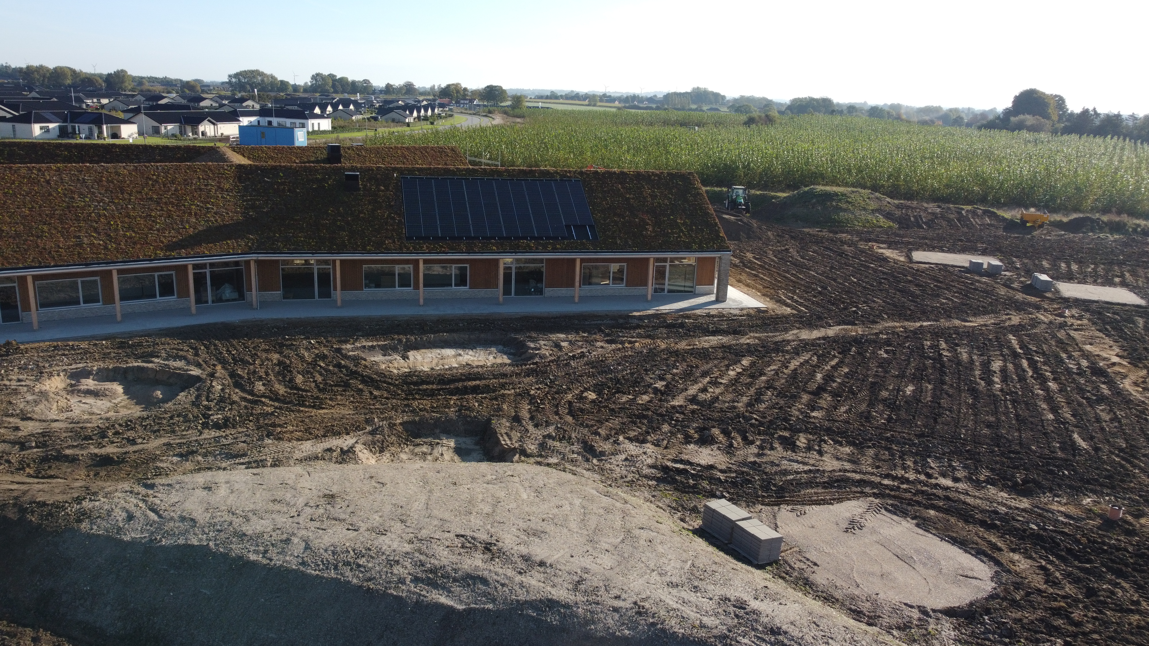 Her har vi samlet dronebilleder fra byggeriet af vores nye børnehus i perioden juli til september 2025.