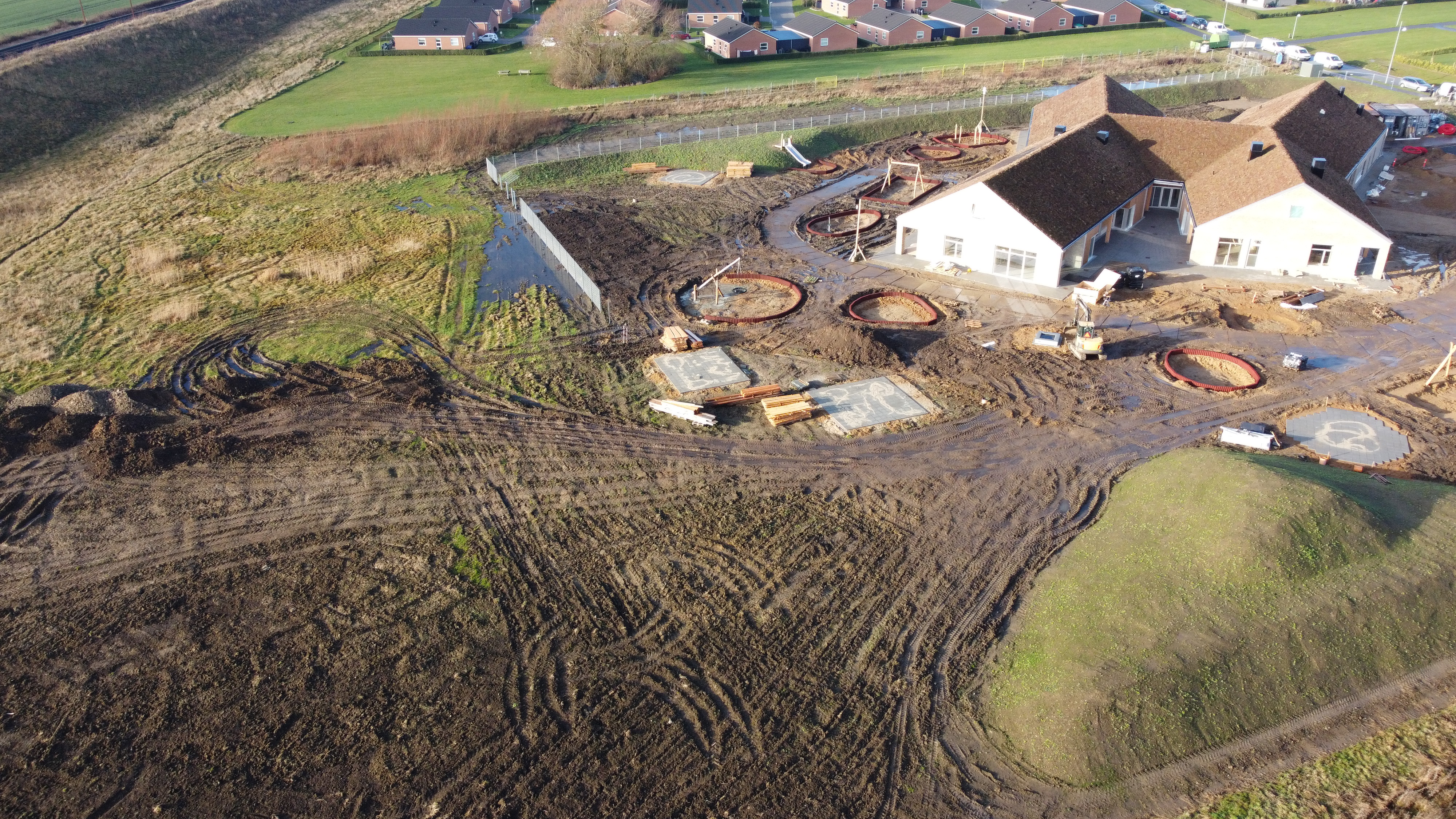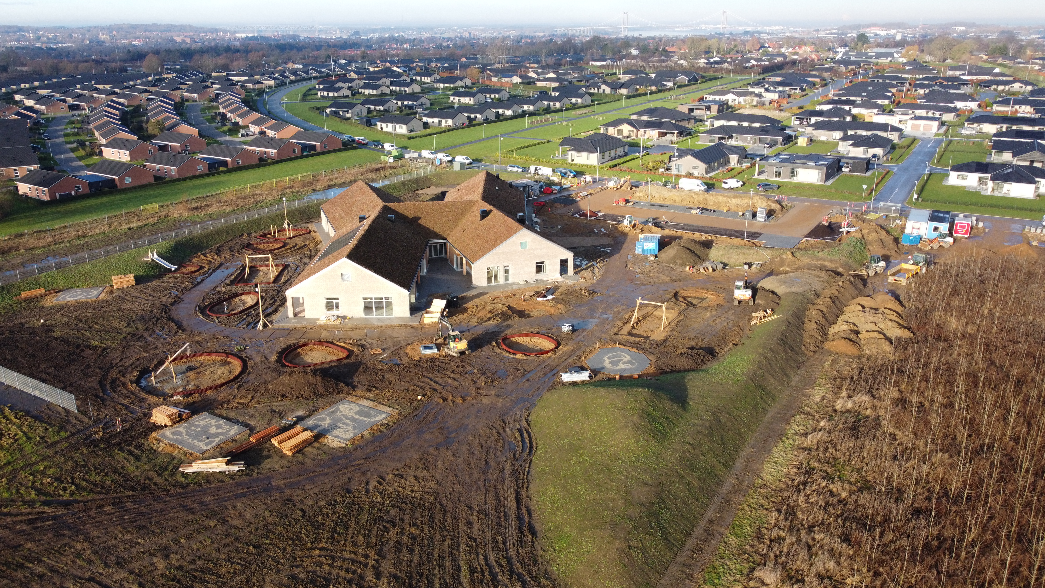 Her har vi samlet dronebilleder fra byggeriet af vores nye Børnehus i periode oktober til december 2025.